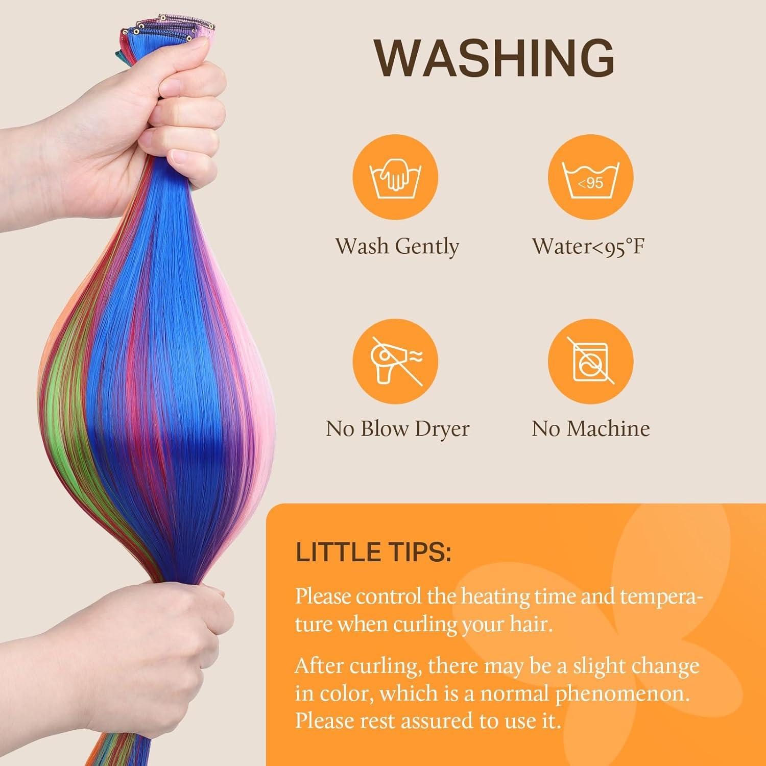 Occasions for color hair extensions: Perfect for any festive events/ everyday dress up and parties. Colorful clip in hair extensions also is a great gift for children, especially for little girls who love to dress up and love rainbow colors