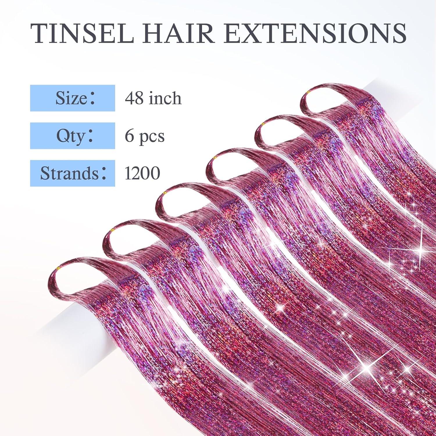 Sparkling Fairy Hair Tinsel: Shiny glitter black color tinsel hair extensions with 1200 strands. Can be used with other colors to give full play to your creativity.It's also perfect as a gift for girls