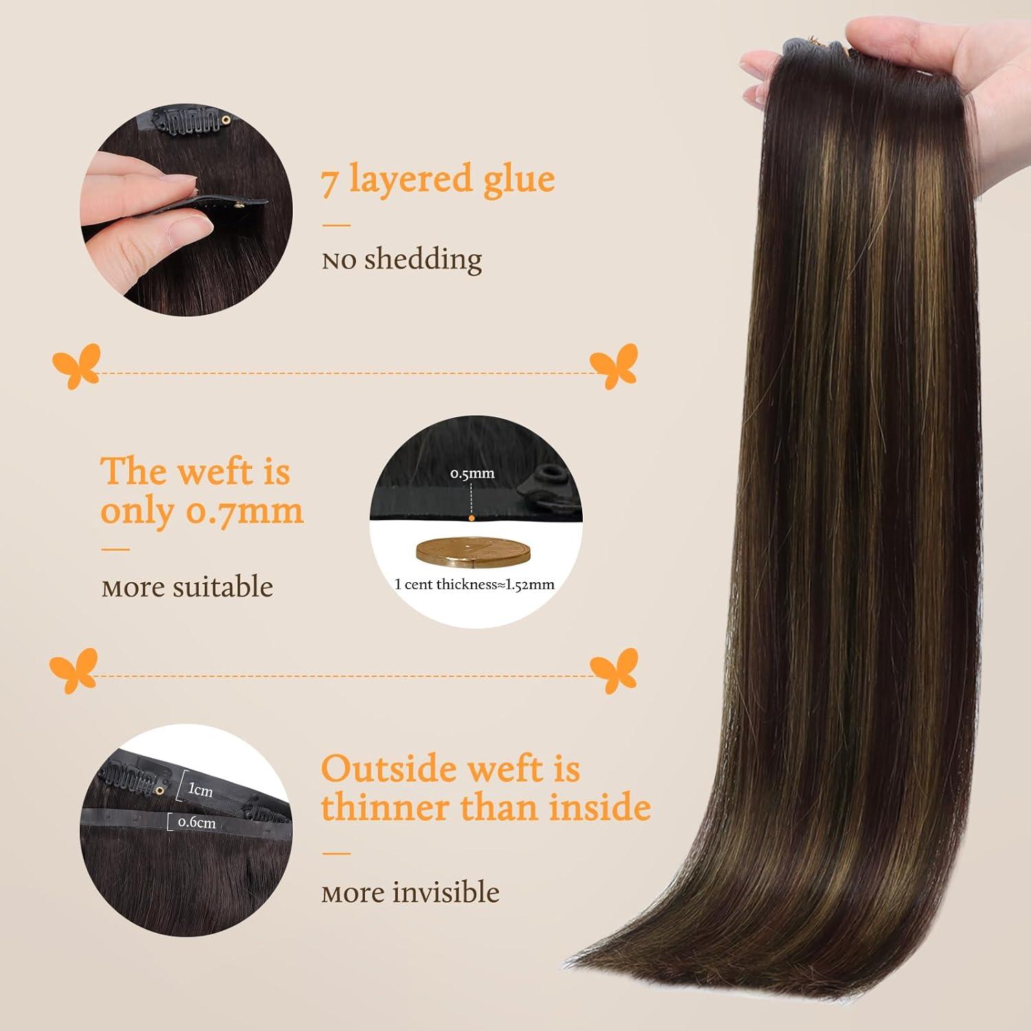 Upgrade 7 Layers PU Bonding Technology: The Invisible Edge clip-ins feature 7-layer PU glue bonding, ensuring no shedding. The PU curtain is narrow outside (6mm) and wide inside, blending closely with your hair color for a more invisible look