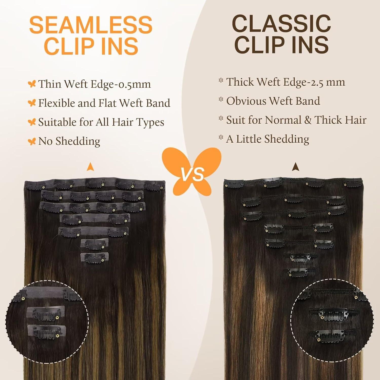 5-10 Minutes to Install-Easy: Seamless clip in extensions add volume and length quickly, taking just 5-10 minutes to wear and 3-5 minutes to remove. Ideal for thin hair, they blend well and offer a perfect match with our recommended styling tips