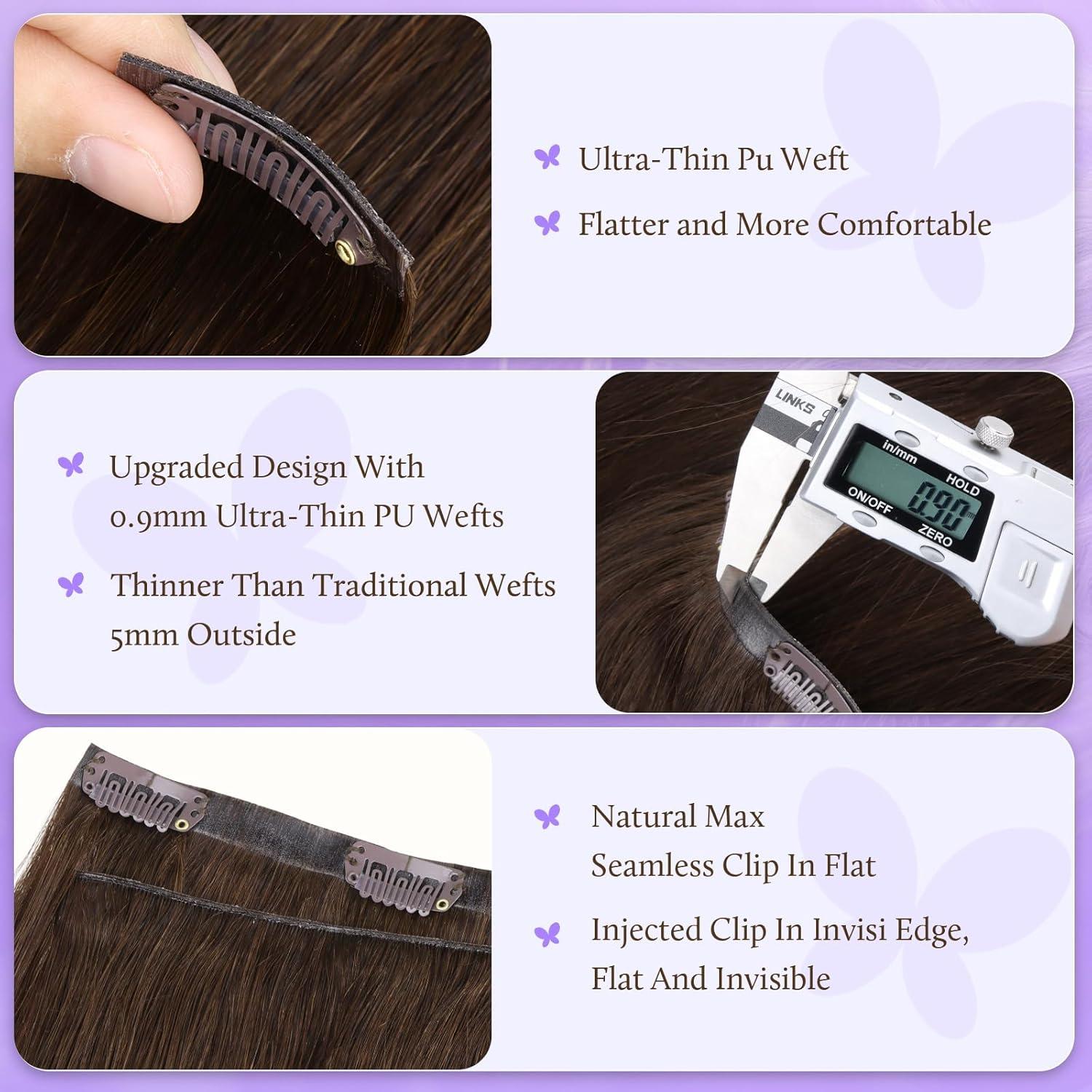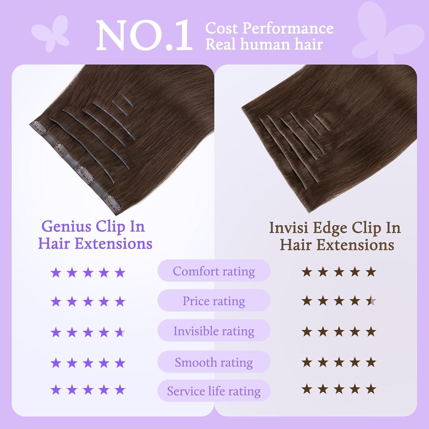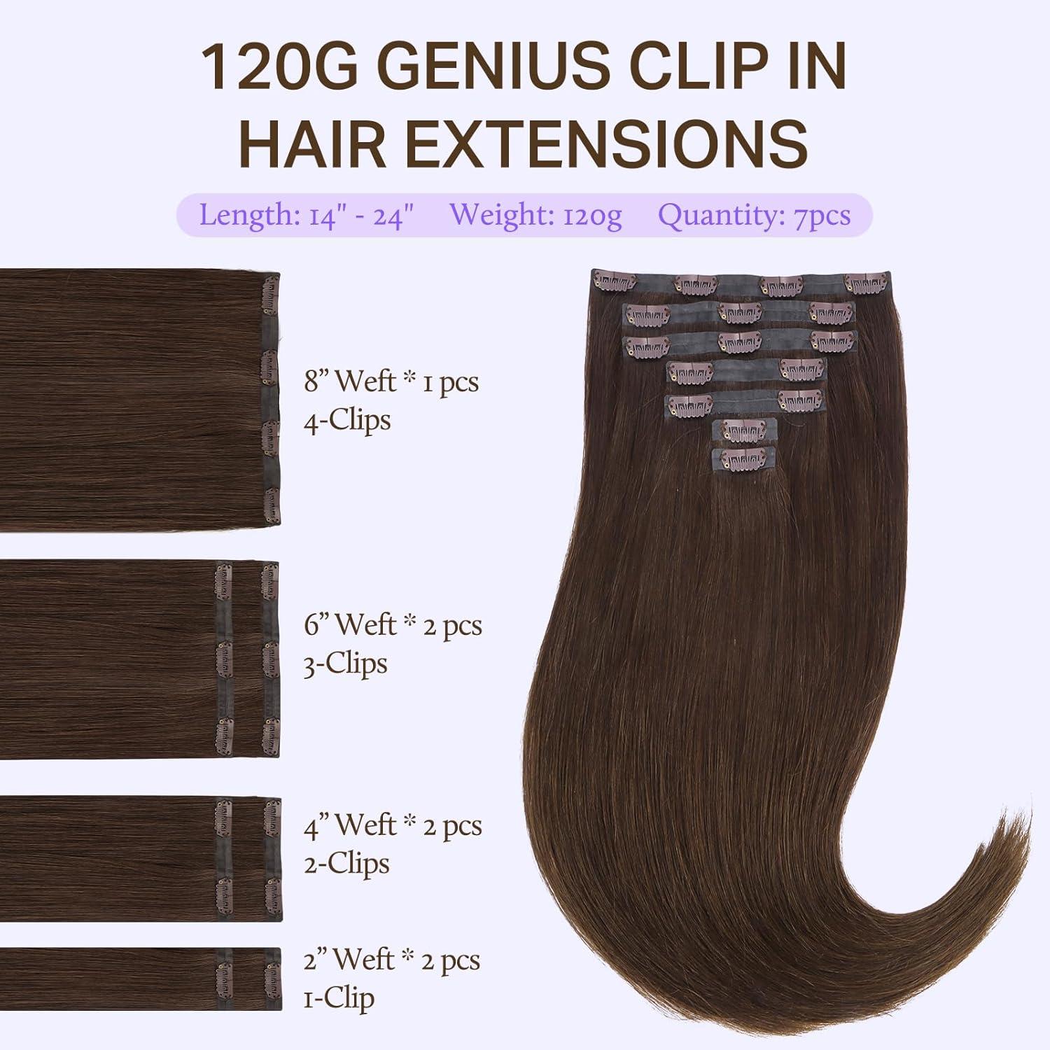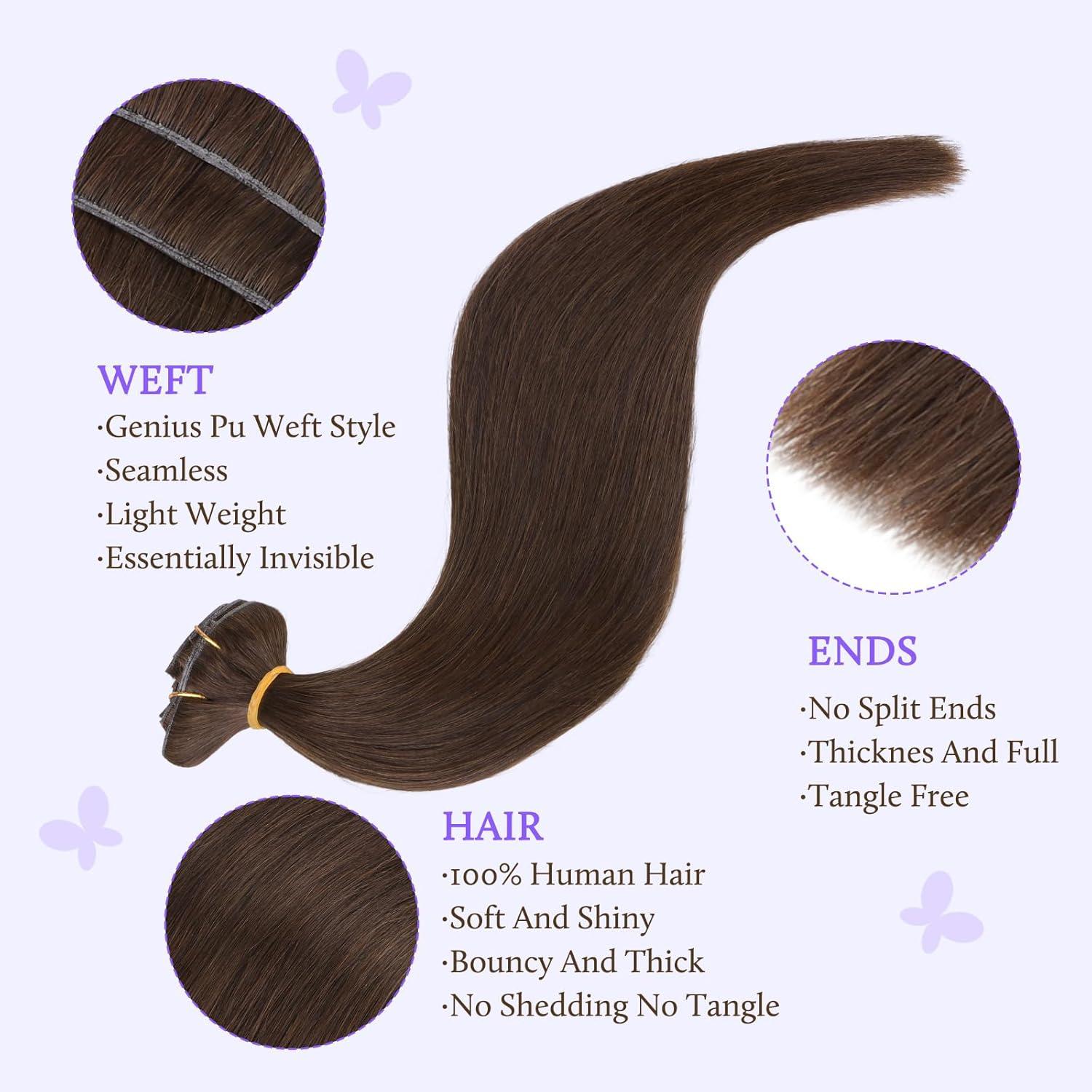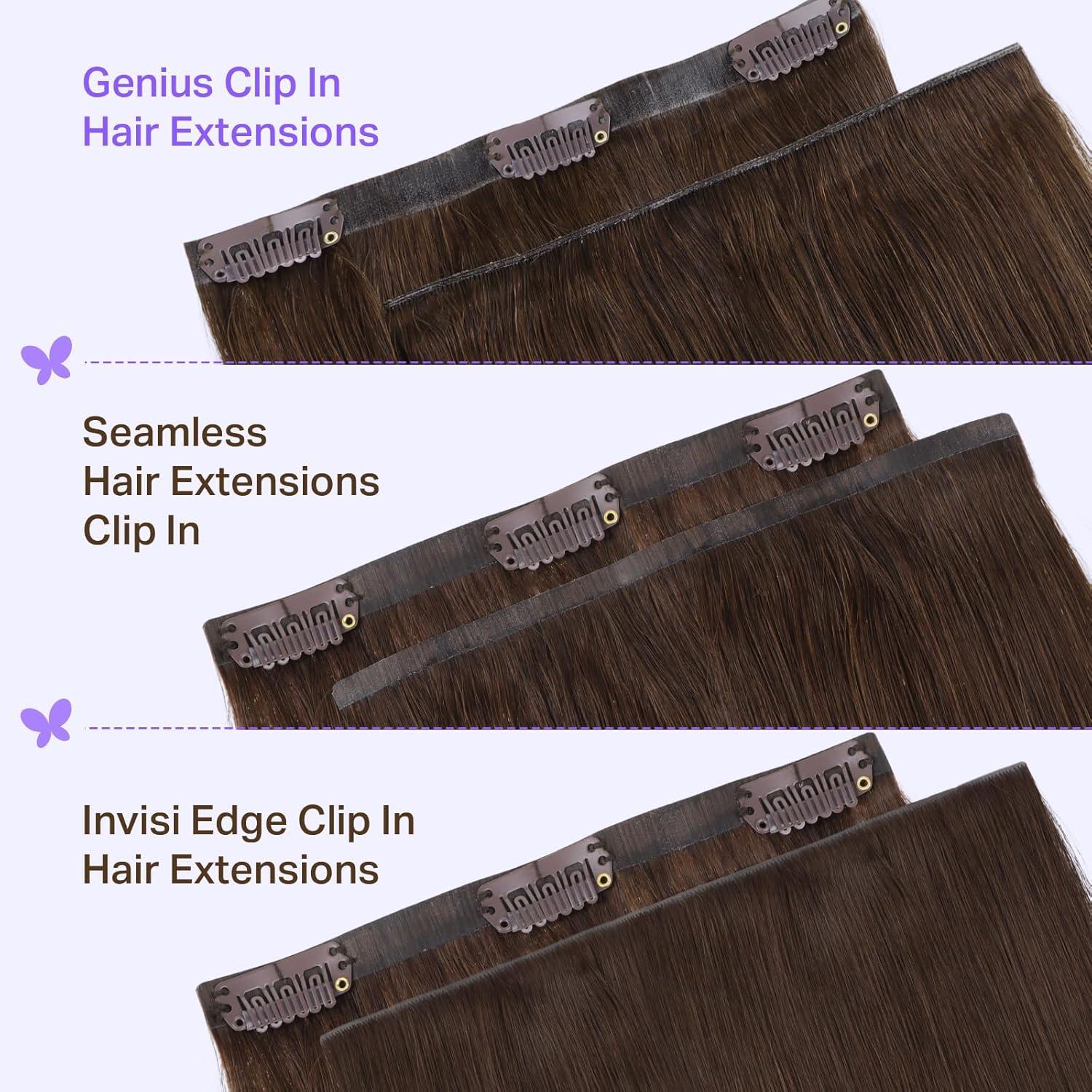 DOORES Genius Seamless Clip in Hair Extensions, Platinum Blonde 18 Inch 7pcs 120g, Human Hair Extensions Seamless Clip ins Weft Straight Hair Invisi Edge Weft(#4 Chocolate Brown)