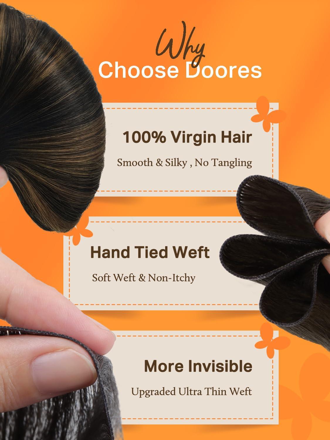 imageDOORES Genius Sew in Weft Hair Extensions Human Hair 20 Inch Natural Black to Chestnut Brown 60g Sew in Extensions Human Hair Handtied Weft Extensions