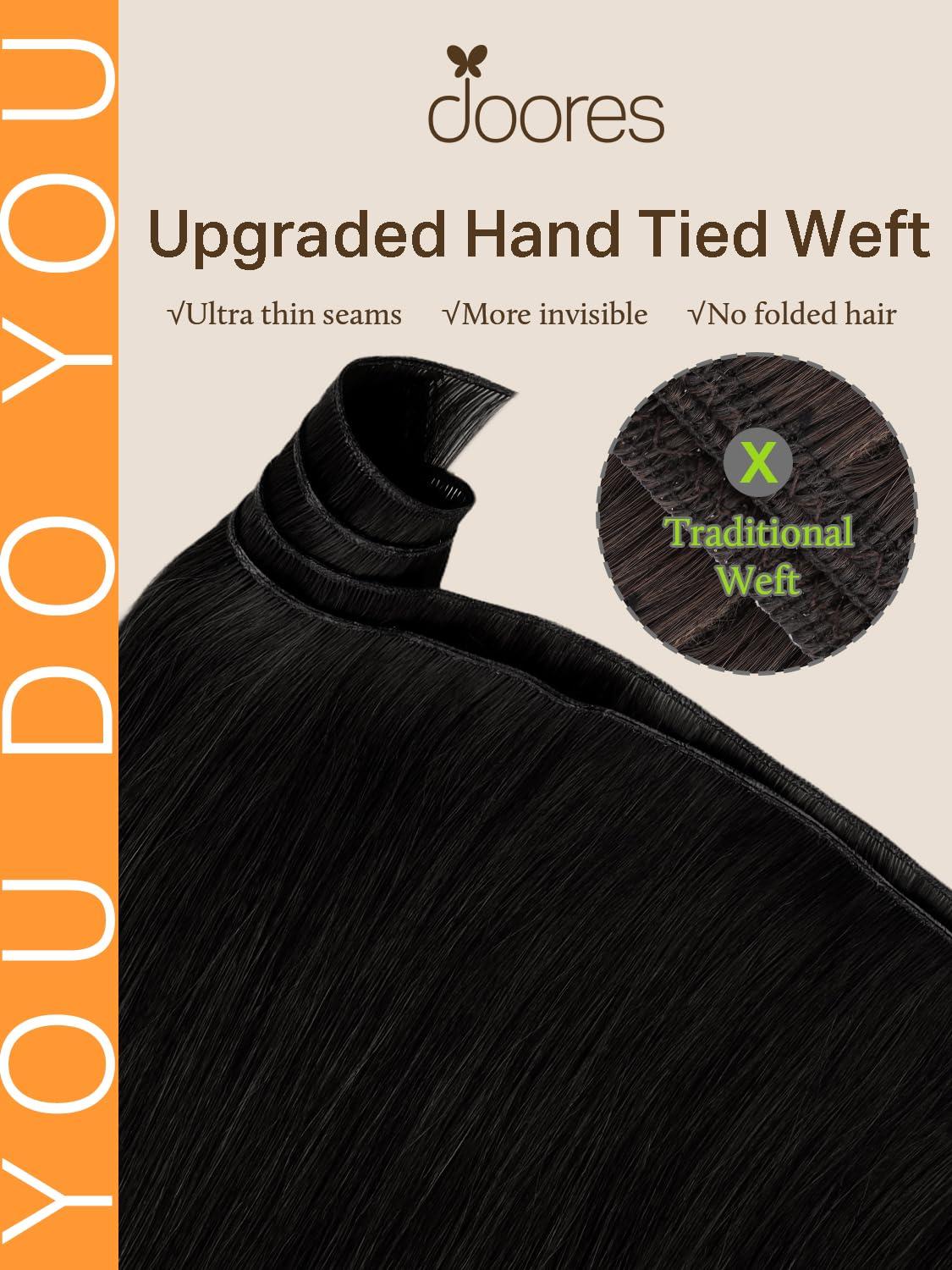 DOORES Hand Tied Genius Sew in Weft Hair Extensions Human Hair, 18 Inch Jet Black 50g, Virgin Extensions for Women Sew in Bundles