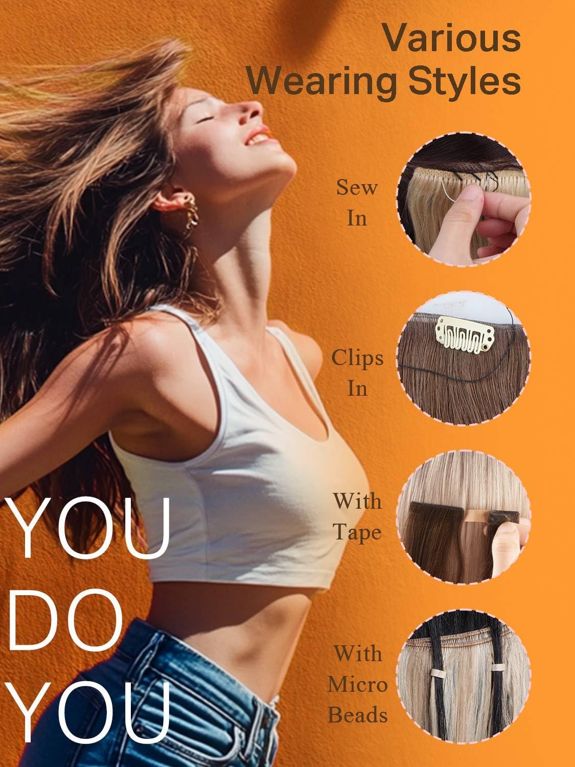 Invisible & 4 Wearing Methods: Genius sew in weft hair extensions feature ultra-thin wefts that prevent scalp itching and provide a flat, seamless look. You can customize your style with 4 wearing methods: direct sew-in, clip-in, tape-in or micro beads