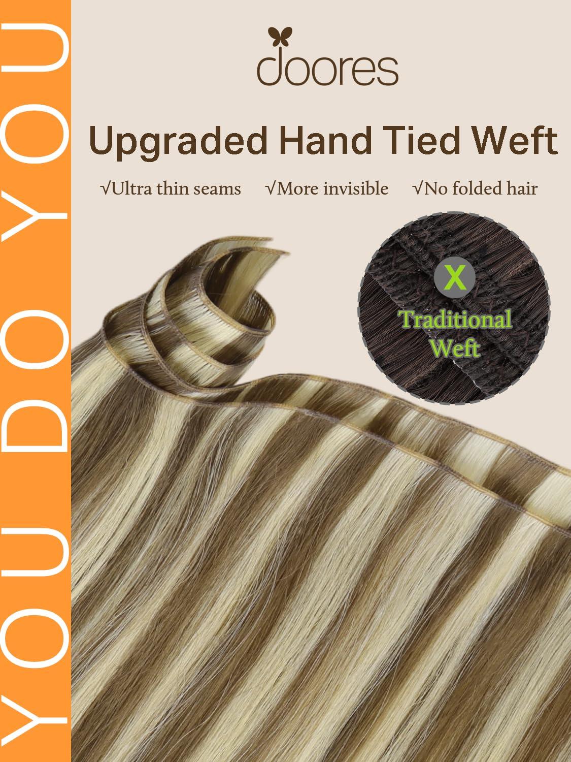 DOORES Hand Tied Weft Hair Extensions Human Hair, 18 Inch Ash Brown to Platinum Blonde 50g, Hair Extensions Human Hair Natural Straight