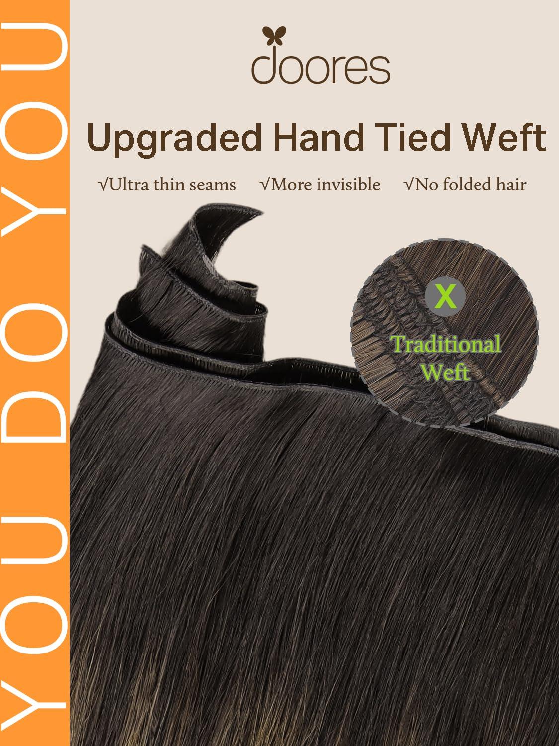 DOORES Hand Tied Genius Sew in Weft Hair Extensions Human Hair, 18 Inch Jet Black 50g, Virgin Extensions for Women Sew in Bundles