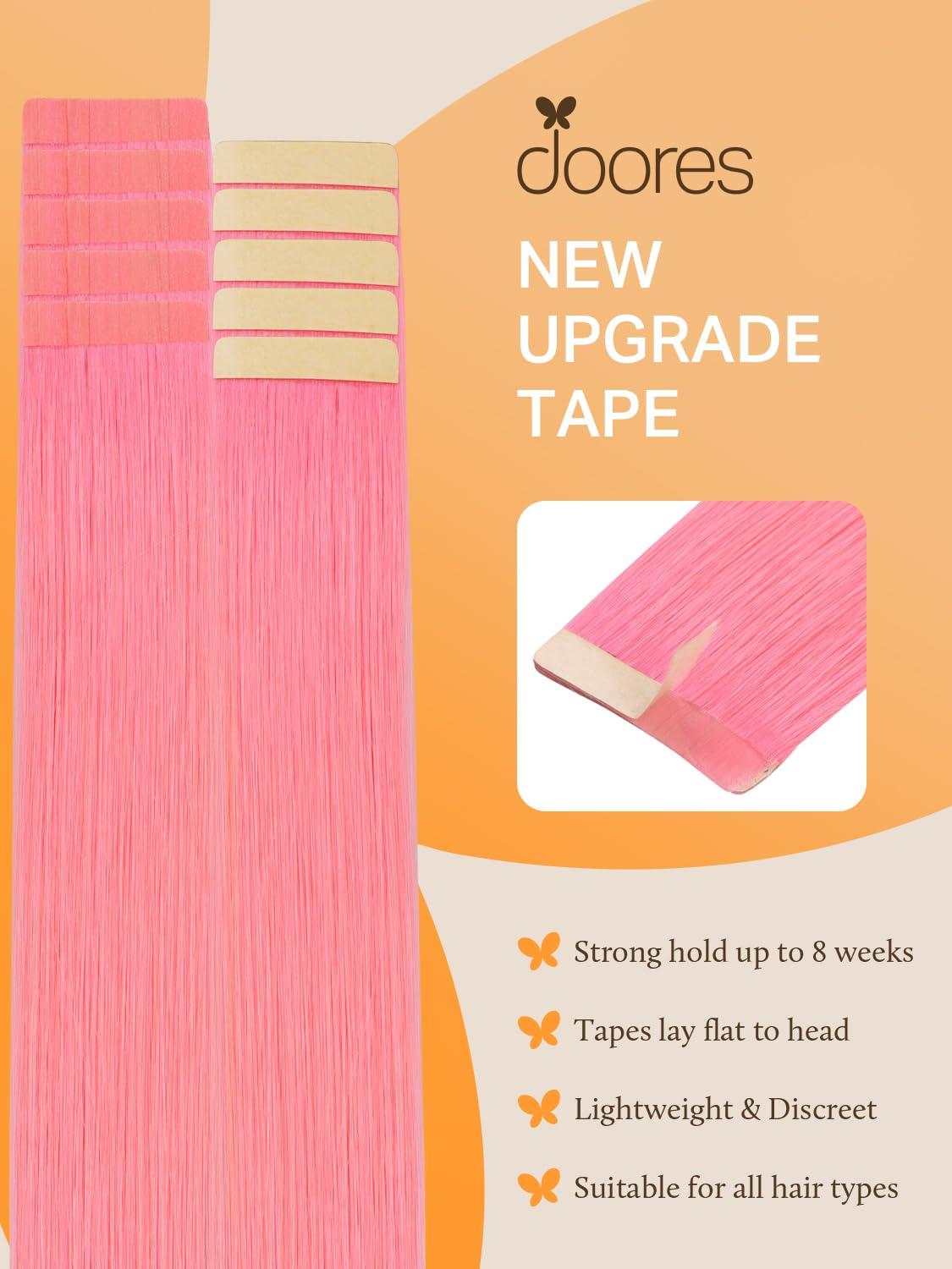 imageDOORES Human Hair Tape in Extensions Peach Pink Tape ins 18 Inch 25g 10pcs Tape in Hair Extensions Human Hair Skin Weft Natural Remy Straight Hair