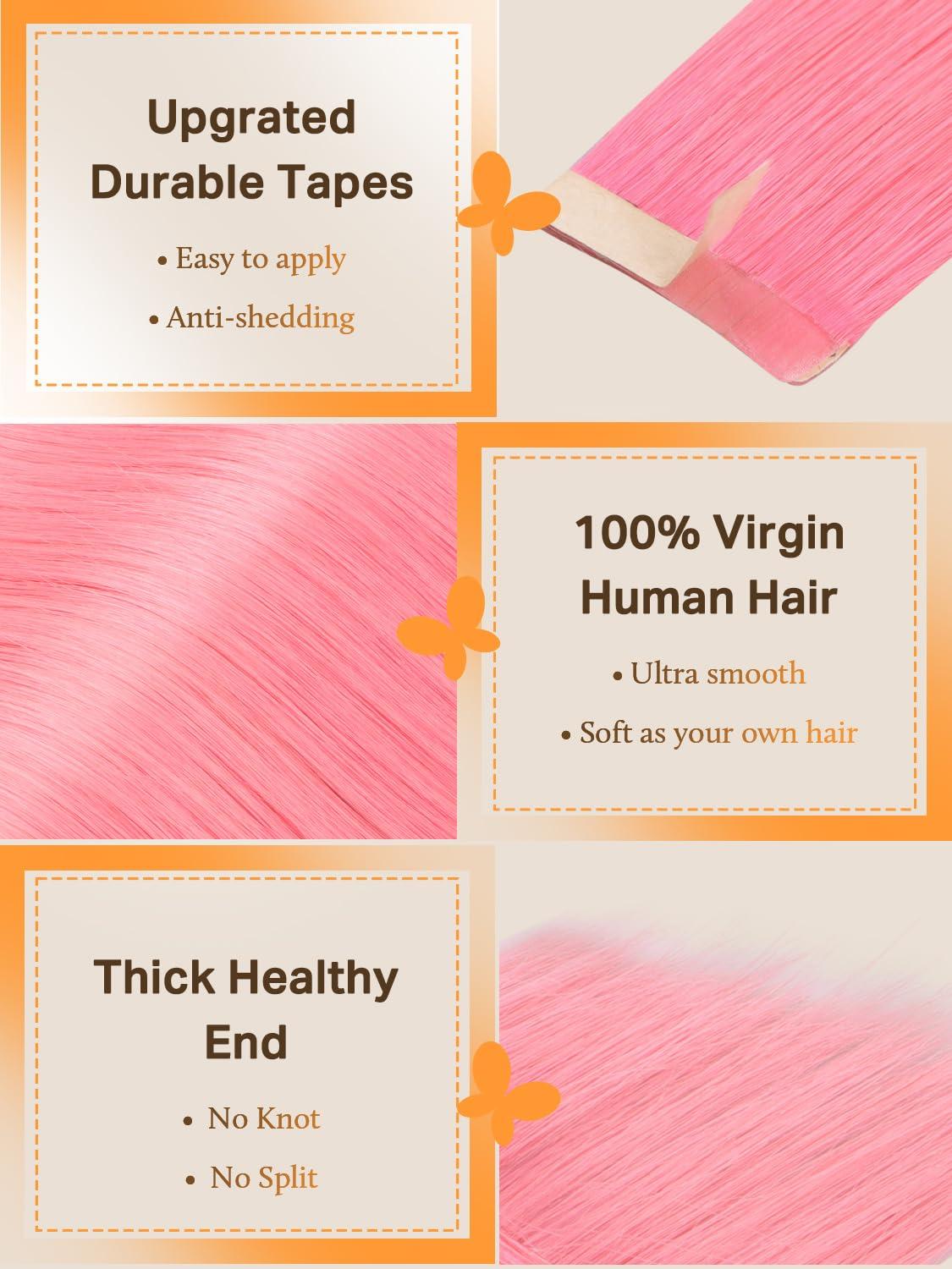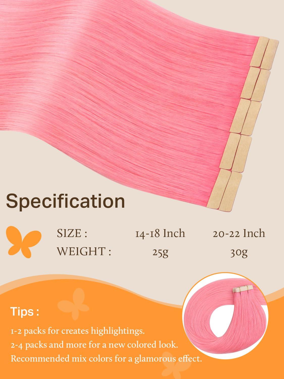 DOORES Human Hair Tape in Extensions, Peach Pink Tape ins 18 Inch 25g 10pcs, Tape in Hair Extensions Human Hair Skin Weft Natural Remy Straight Hair