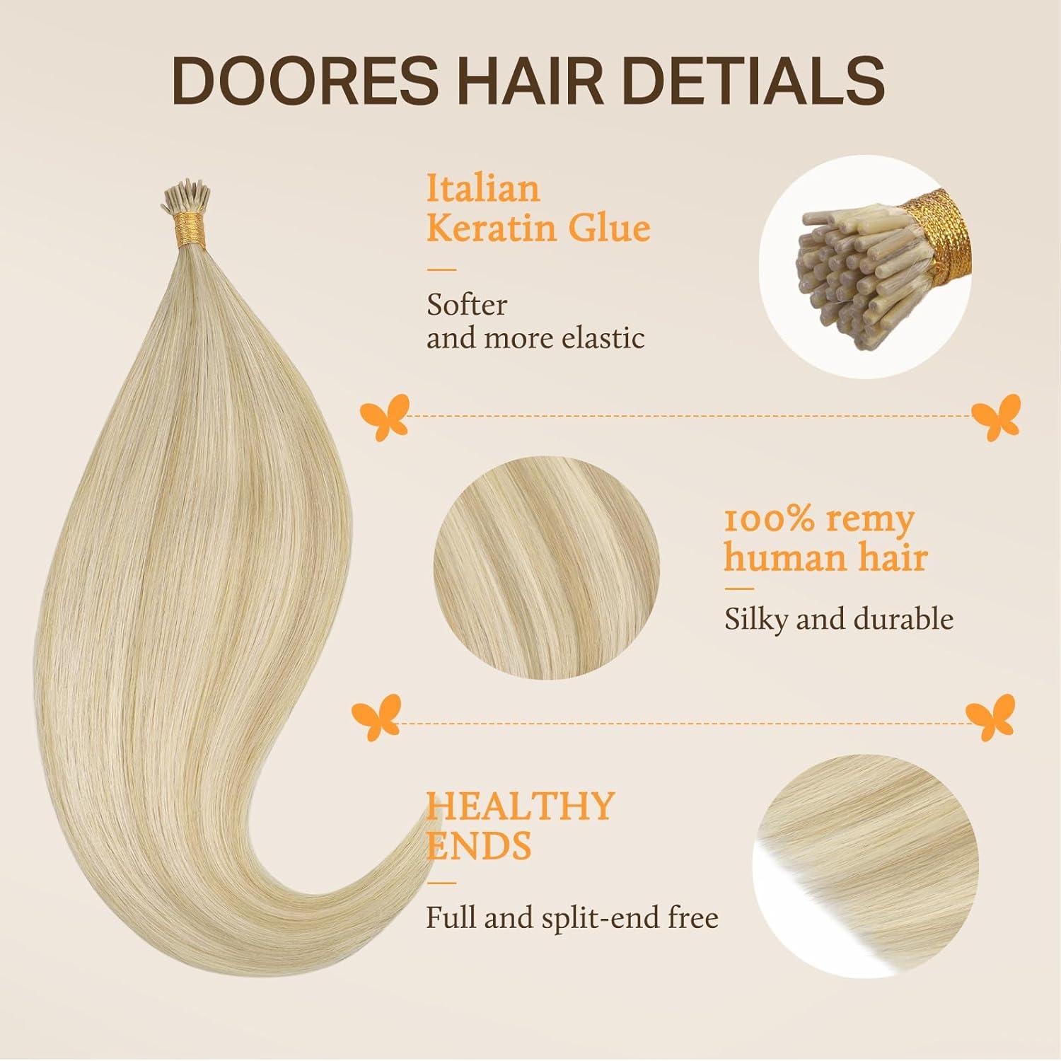 Be the first to review “DOORES I Tips Hair Extensions, 18 Inch, Dark Blonde Highlighted Bleach Blonde, 50g/50s, Straight Human Remy Hair, Cold Fusion, Microlink Installation”