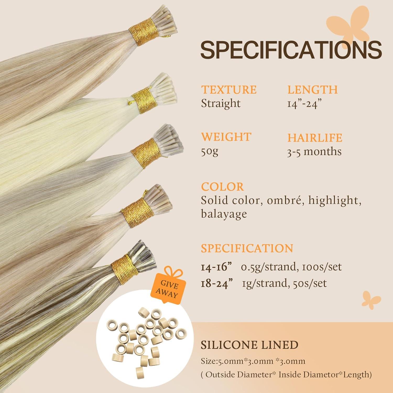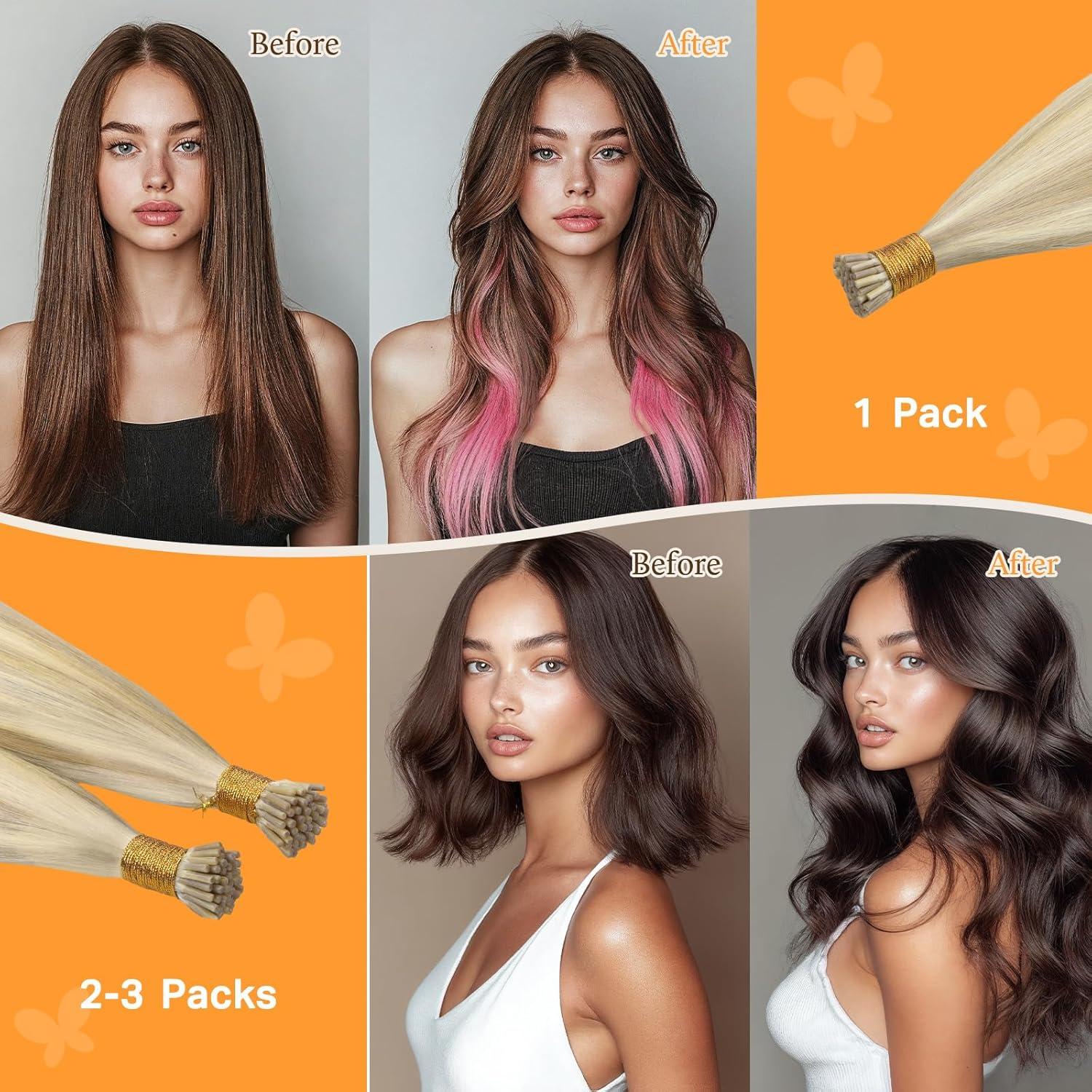 High Quality Hair Remy Hair: I tip hair extensions are made of 100% remy human hair, the high quality help to reduce knots and split ends and greatly improve the smoothness of the hair. The service life is 2-3 months longer than ordinary hair