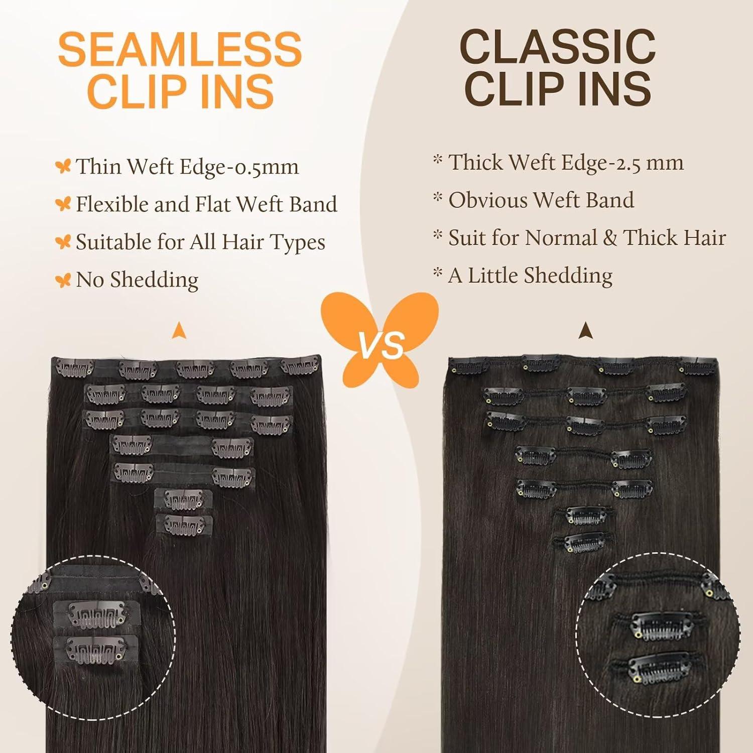 5-10 Minutes to Install-Easy: Seamless clip in extensions add volume and length quickly, taking just 5-10 minutes to wear and 3-5 minutes to remove. Ideal for thin hair, they blend well and offer a perfect match with our recommended styling tips