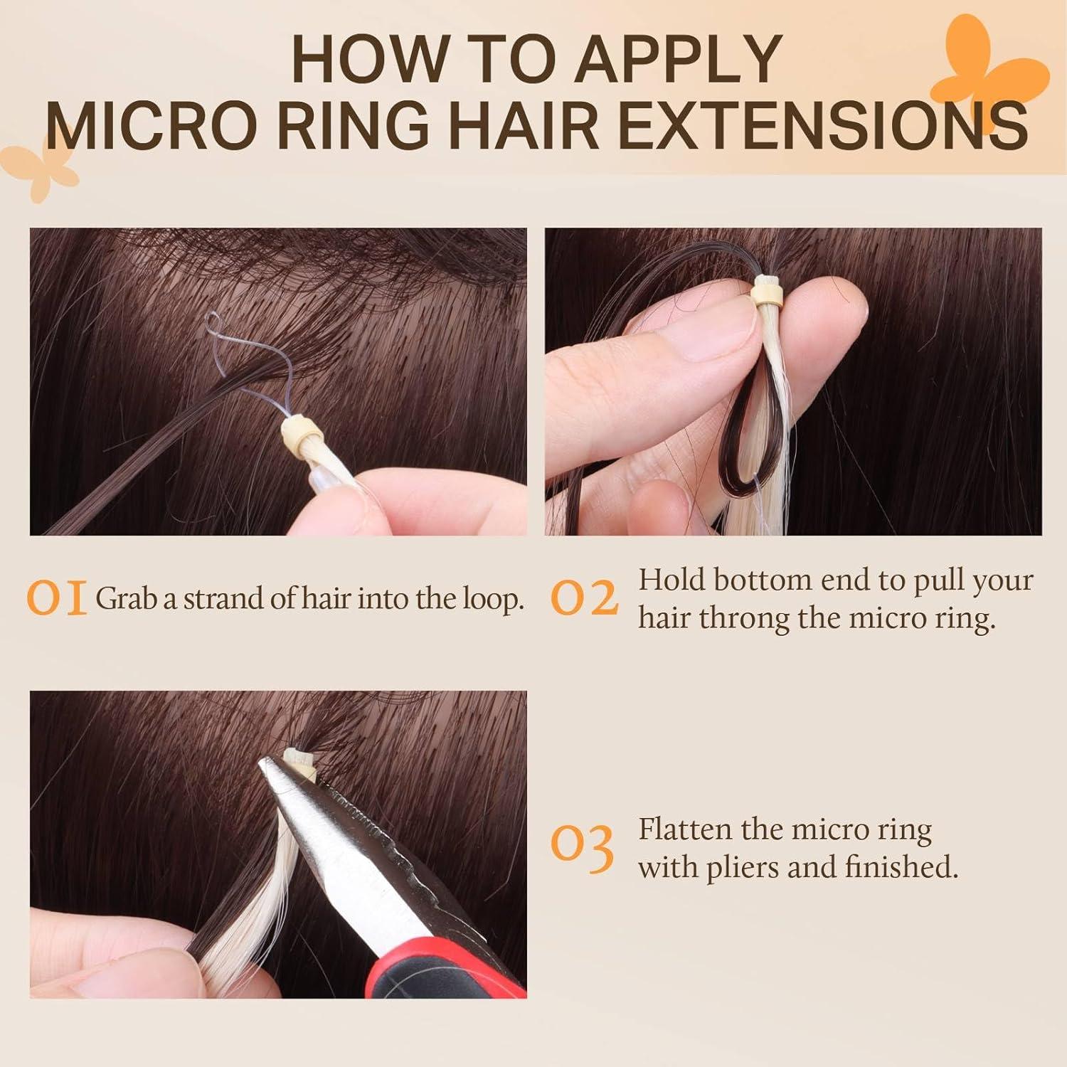 Cold Fusion Installation: the application of micro link hair extensions requires no heat or glue, it can minimize hair damage. Extensions are easy to put on and take off. The beads also match the hair color to provide invisible wearing effect
