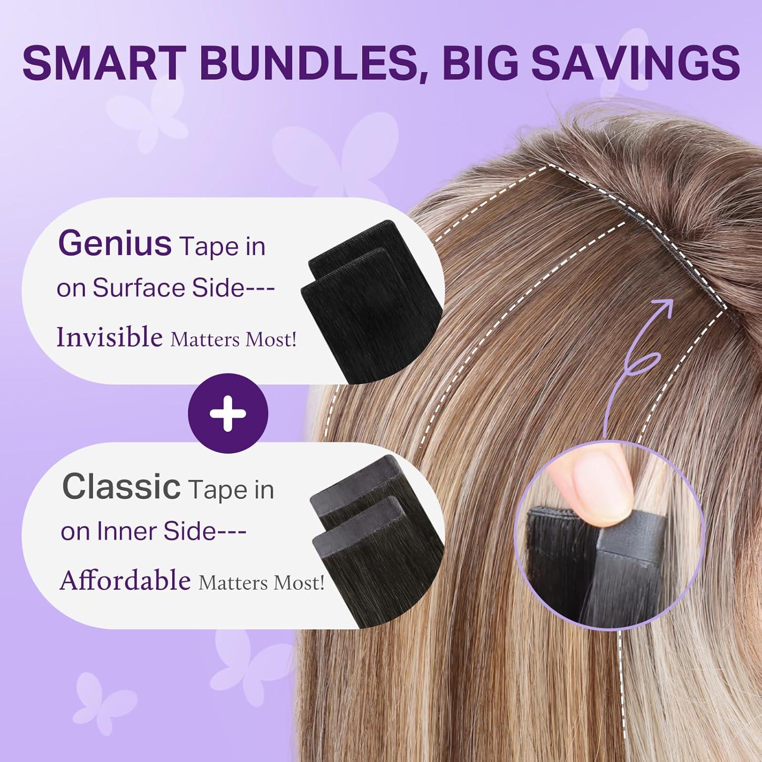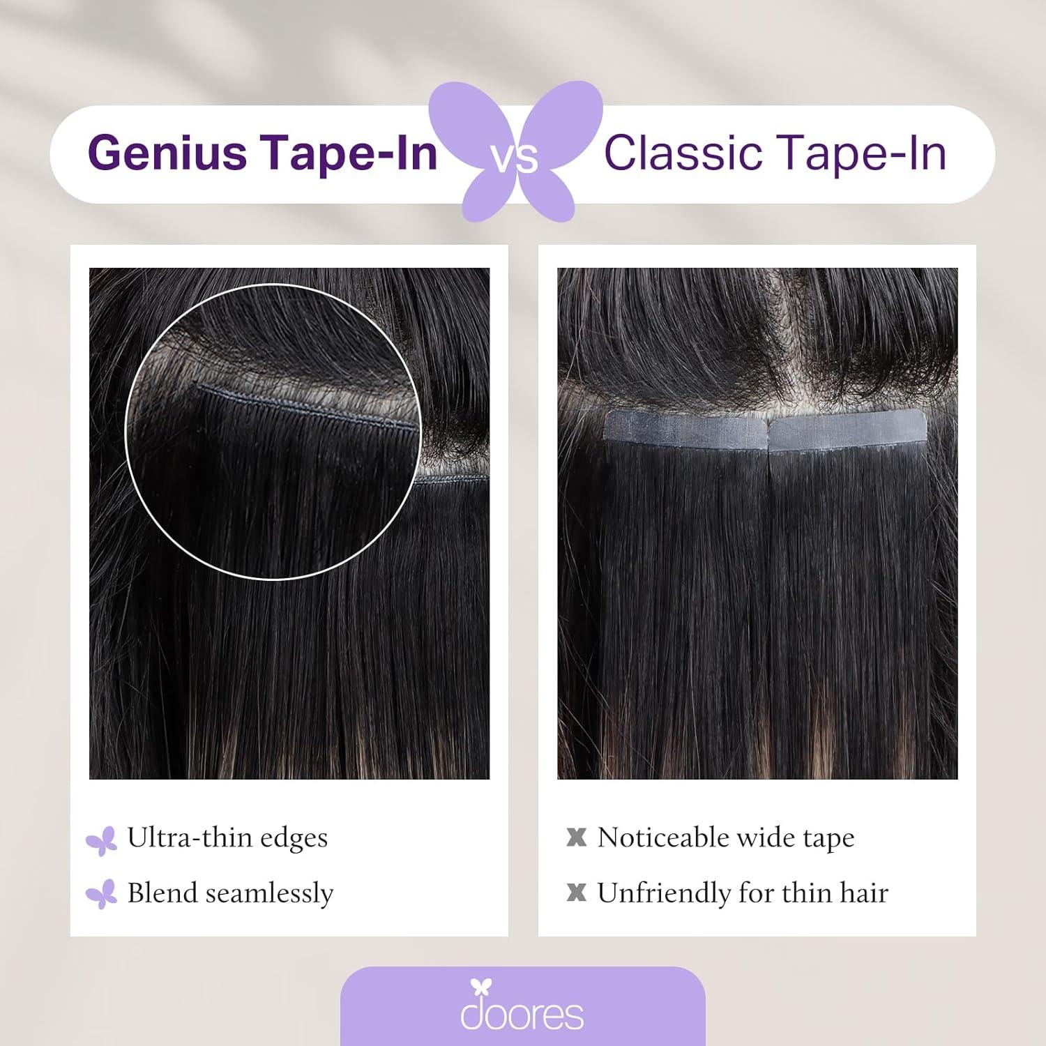 Seamless & Invisible (NEW VERSION): Genius tape in hair extensions feature ultra-fine edges, delivering a flawless, invisible look that's more seamless than classic tape-ins. Ideal for fine, thin hair, they ensure a natural appearance without the risk of detection